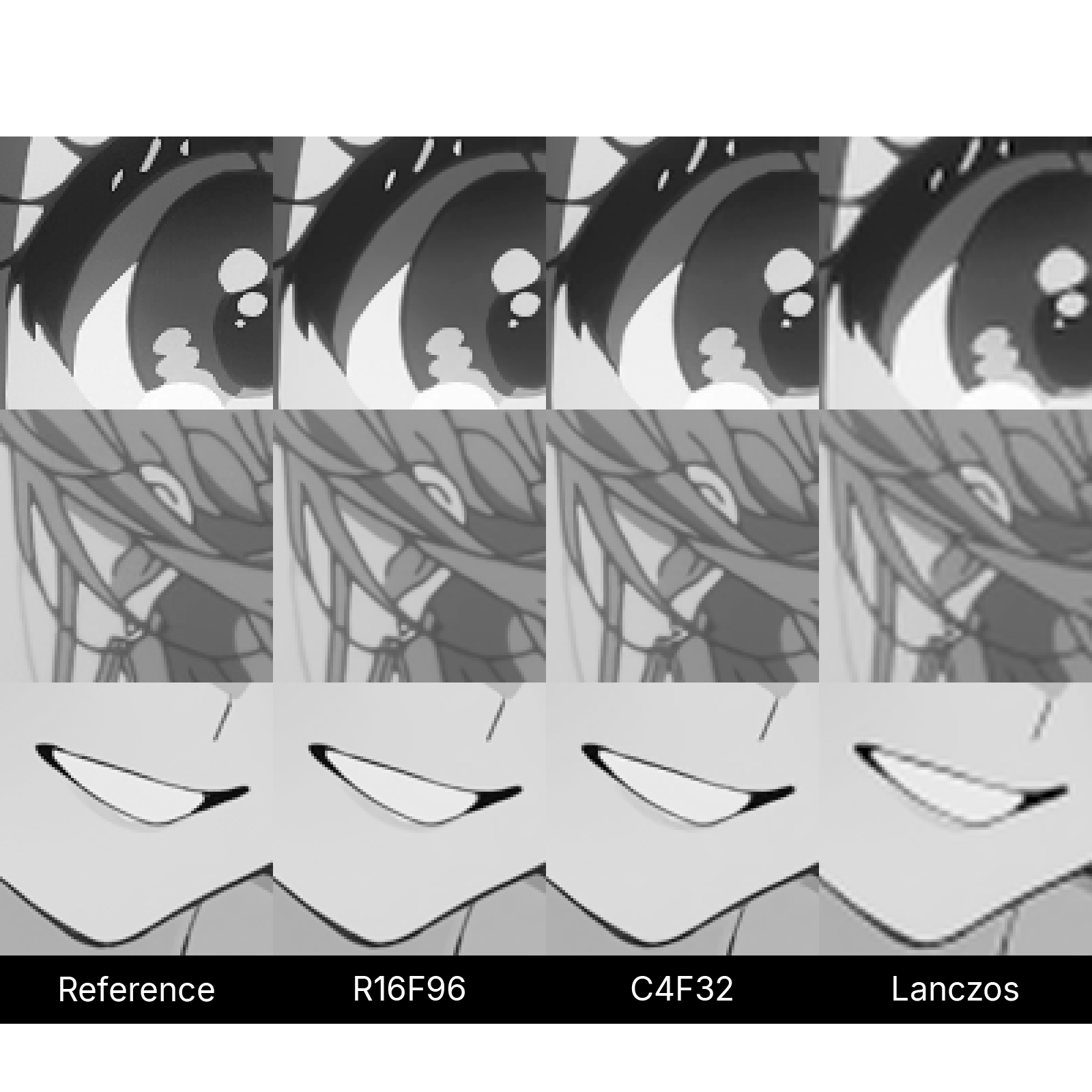 Convolutional Neural Networks for super-resolution and restoration of anime-style art. Available as GLSL shaders and in the ONNX format.